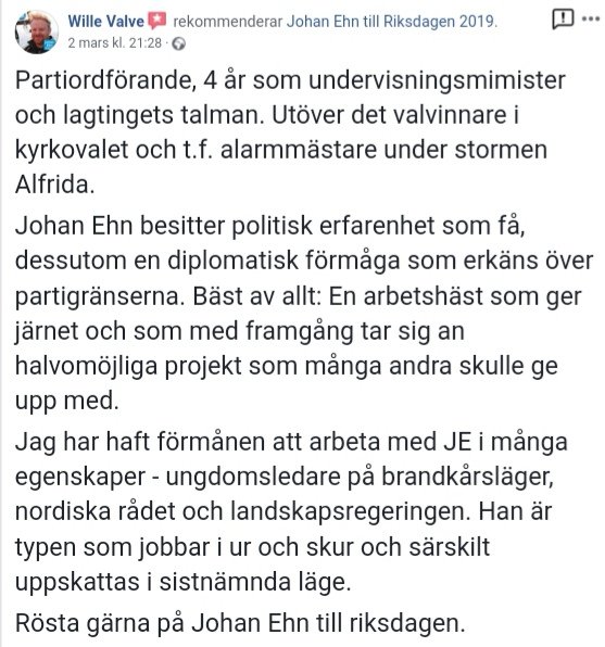 Wille Valve (MSÅ), minister, vice partiordförande: